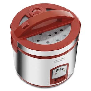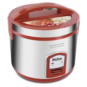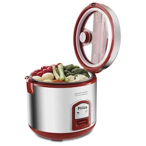 -Design moderno e sofisticado; -Multifuncional; -Otimize seu tempo cozinhando arroz e ao mesmo tempo legumes no vapor; -Tampa com visor em vidro permite o acompanhamento do preparo do alimento; -Coletor de água evita o acumulo de água na tampa da panela; -Colher para o manuseio do alimento; -Cordão de energia removível; -Capacidade para 10 xícaras de arroz; -Tigela com revestimento antiaderente; -Luzes indicadoras de funcionamento; -Faz diversos tipos de arroz; -Bandeja perfurada para cozinhar no vapor; -Tampa vedada com alça, botão de travamento e saída de vapor.Lâmpada piloto