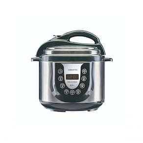 Painel digital com timer, 6 receitas pré programadas, Pode ser levado à mesa, Timer com desligamento automático, Controle da temperatura interna, Mantém o alimento aquecido, Com válvula de controle de pressão, Acompanha colher, copo medidor e reservatório de água de vapor.Lâmpada piloto