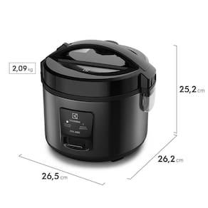 Características Tipo: Panela Elétrica Funções: Cozinhar/refogar Capacidade: 2,0 litros Desligamento Automático Antiaderente Coletor de Vapor Bandeja para Cozimento a Vapor Luz Indicadora de Funcionamento Especificações Técnicas Modelo: ERC10 Potência: 350W Voltagem: 110V / 220V (não é bivolt) Cor: Preto EAN: 7896347197359 (110V) / 7896347197366 (220V) Garantia: 12 meses Dimensões e Peso Dimensões do produto sem embalagem (AxLxP): 252x262x265 mm Dimensões do produto com embalagem (AxLxP): 286x295x295 mm Peso do produto sem embalagem: 2,1 Kg Peso do produto com embalagem: 2,6 Kg Itens Inclusos 01 Panela ERC10 01 Copo Medidor Espátula