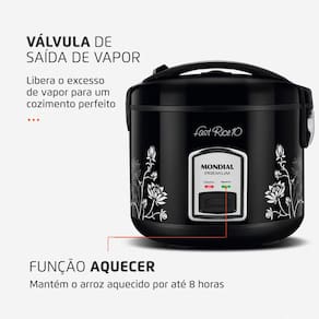 CAPACIDADE DE 6 XÍCARAS: A panela de arroz Mondial tem a capacidade ideal para o arroz do dia a dia e outras receitas.