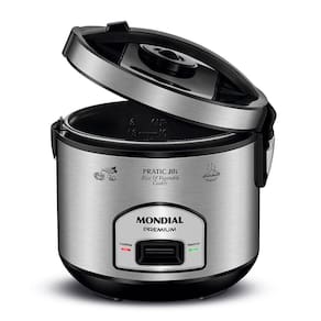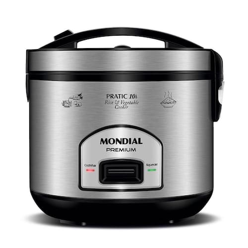 Panela elétrica com capacidade para 10 xícaras, revestimento antiaderente, função aquecer e cozi vapLâmpada piloto