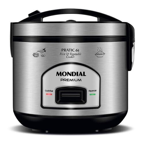 A panela de arroz elétrica PE-43-6X prateada faz até 06 xícaras de arroz! É antiaderente, tem 400W, vem com livro de receitas e faz também doces, risotos, sopas, carnes e legumes. Quer saber o que vem na panela de arroz? Esta panela elétrica acompanha um cesto cozi-vapor para cozinhar legumes e verduras no vapor, o que preserva vitaminas e deixa mais saudável. Ela também vem com 1 colher especial, 1 copo medidor e 1 livro de receitas para você cozinhar o que quiser de A a Z. Sua válvula de saída de vapor libera o excesso de vapor durante o preparo, proporcionando cozimento perfeito. Além disso, o coletor de vapor recolhe a água acumulada durante o funcionamento, para você não se molhar ao levantar a tampa. A cuba (recipiente) tem revestimento antiaderente: os alimentos não grudam e a faz mais prática de lavar. Seus 400W de potência ajudam você a cozinhar mais rápido. Uso doméstico.