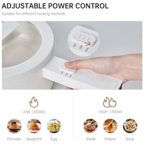 Pote Elétrico Multifuncional Equipado com função de ajuste de potência dupla 350W e 750W, você pode escolher a potência que deseja. Sob a potência de 350 W, você pode fazer espaguete, ramen, panqueca, ovos. Além disso, ao cozinhar bife, sopa ou panela quente, você pode alternar para a configuração de alta potência 750 w. Este fogão portátil olayks adequado para uma variedade de métodos de cozimento, perfeito para atender às suas várias necessidades. Fácil limpeza e cozimento saudável O interior é feito de material de liga de alumínio de dureza 8h, o invólucro é feito de PP engrossado, durável e fácil de limpar, mesmo sem pressão com escova de arame. A superfície do pequeno fogão elétrico é um revestimento antiaderente de esmalte cerâmico de qualidade alimentar, garantindo que sua comida não seja contaminada. Você pode mover facilmente seus alimentos para evitar que grudem durante o cozimento. A mini panela quente olayks 1.5L pode trazer uma cozinha saudável. Aquecimento rápido e maior segurança Nossa pequena panela quente usa uma placa de aquecimento completa atualizada, que pode manter sua comida aquecida uniformemente e aquecida de forma duradoura. Em comparação com os fogões tradicionais, esta panela portátil é mais durável, mais fácil de cozinhar diferentes tipos de comida saborosa. Além disso, possui proteção contra superaquecimento e dispositivo de proteção contra fervura seca, garante a segurança e você pode ter certeza de usar