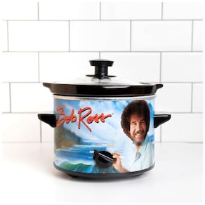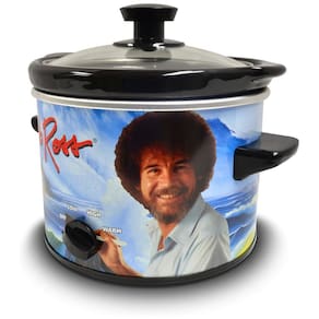Panela elétrica de cozimento lento Bob Ross de 1,8 litros com três configurações de calor (baixo, alto e quente), inserto de cerâmica removível e revestimento colorido.Lâmpada piloto