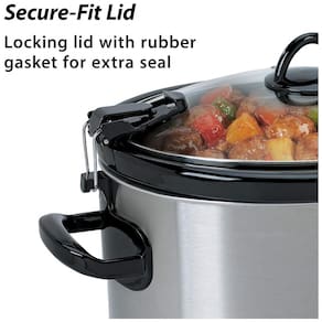 Ampla capacidade de 5,7 litros: Esta panela de cozimento lento manual é perfeita para servir mais de 7 pessoas ou para acomodar um assado de 2,7 kg. Com um elegante acabamento em aço inoxidável prateado polido, detalhes em preto e alças de plástico, ela combina estilo e funcionalidade. Atenção: a tampa deve permanecer destravada durante o cozimento para evitar que o excesso de pressão cause o cozimento excessivo dos alimentos.