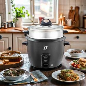 Cozinha até 7 xícaras de arroz, 500W de potência, tampa com válvula de saída de vapor, revestimento antiaderente, função manter aquecido, copo medidor e colher dosadora inclusos, luz indicadora de funcionamento, base antiderrapante, coletor de vapor removível.Lâmpada piloto
