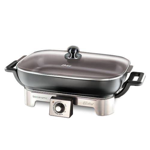 Prepare uma variedade de deliciosas receitas Leve direto ao forno para gratinar e dourar no próprio recipiente da panela. Tecnologia Bioceramic Superfície de cozimento antiaderente com revestimento cerâmico 100% natural, que proporciona maior durabilidade e eficiência na hora de cozinhar. Cozinha 20% mais rápido e 4 vezes mais durável e resistente a riscos que as superfícies antiaderentes tradicionais. Desenvolvida para o seu dia a dia. Funções exclusivas: Ajuste da temperatura de 120ºC a 205ºC e função manter aquecido, que mantém a temperatura após o final do preparo. Versátilleve-a diretamente para o forno Pode ser levada ao forno para assar, gratinar ou cozinhar e servir na própria panela com rechaud, ideal para jantares com os amigos e familiares. Fácil e práticade higienizar O revestimento Bioceramic é 4 vezes mais durável e resistente, permitindo ser lavada na máquina de lavar louças. Além de seu design prático e eficiente, aPanela Bioceramic Gran Sabortem capacidade de4,5 litros. Superfície antiaderente natural para cozinhar de forma mais saudável Panela e Tampa Submergíveis para fácil limpeza também podem ser colocadas no lava louça Panela removível para servir Grande capacidade de 40 x 30cm, ideal para refeições para toda família. Potência: 1500W Consumo: 1,5kWh Dimensões: 580x370x220mm