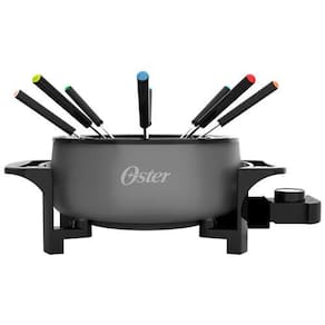 Panela elétrica para fondue Oster com 1000W de potência, 4 níveis de temperatura, função manter aquecido, ideal para fondue de queijo, carne e chocolate. Acompanha 8 garfos.Funções