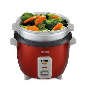 Panela Elétrica Philco Multifuncional PPA3V com função aquecimento, tampa de vidro, tigela antiaderente, bandeja para cozimento a vapor, colher e copo medidor.Lâmpada piloto