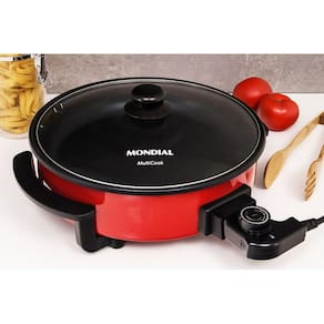 Código de barras: 7898490168460 Marca: Mondial Modelo: PE-28 Alimentação: Energia Elétrica Voltagem: 127V não é bivolt Potência W : 1200 Consumo Kw/h : 1.2 Cor: Vermelho Material/composição: PP, metal Capacidade: 3 litros Pode ser levado à mesa: Sim Possui tampa: Sim Tempo de cozimento/preparo: Varia de acordo com o tipo de alimento Tipo de alimentos que comporta: Risotos, Almondega, Paella, Assados e muito mais Características: Seletor de temperatura Conteúdo da embalagem: 01 Panela Elétrica,Manual de Instruções, Manual de Assitência Técnica Dimensões aproximadas do produto AxLxP : 34,50 x 34,70 x 11,00 cm Peso aproximado do produto: 2,3kg Garantia do fabricante:12 meses Fabricante: MK Eletrodomésticos Mondial S.A Ean: 7898578150165