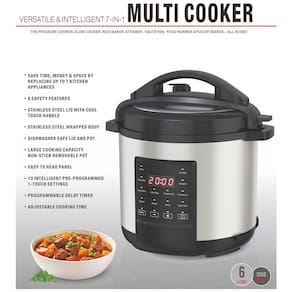 Desfrute da praticidade de um eletrodome´stico de cozinha tudo-em-um com a Versa´til e Inteligente Panela Multiuso 7 em 1. Projetada para substituir va´rios eletrodome´sticos, esta panela pode cozinhar sob pressa~o, cozinhar lentamente, vaporizar, refogar e ate´ fazer iogurte, tudo em uma u´nica unidade compacta e eficiente. Com sua grande capacidade de 6 litros, e´ perfeita para fami´lias ou preparo de refeic¸o~es, ajudando voce^ a criar refeic¸o~es deliciosas e sauda´veis com pouco esforc¸o. Seja cozinhando arroz, ensopados ou ate´ mesmo assando sobremesas, esta panela multiuso elimina as complicac¸o~es da cozinha. Equipada com 13 func¸o~es de cozimento preprogramadas e inteligentes, este eletrodome´stico oferece uma experie^ncia de cozimento perfeita para todos os ni´veis de habilidade culina´ria. O painel de controle fa´cil de ler permite que voce^ escolha entre va´rios programas pre´-definidos, enquanto o tempo de cozimento ajusta´vel e o timer de atraso oferecem flexibilidade na preparac¸a~o das refeic¸o~es. Construi´da com um corpo de ac¸o inoxida´vel durável e uma panela antiaderente, a panela multiuso na~o e´ apenas funcional, mas tambe´m fa´cil de limpar. A seguranc¸a e´ uma prioridade com a Panela Multiuso 7 em 1. Com 8 mecanismos de seguranc¸a embutidos, como protec¸a~o contra superaquecimento, uma tampa com trava de seguranc¸a e liberac¸a~o automa´tica de pressa~o, voce^ pode cozinhar com confianc¸a sabendo que sua cozinha esta´ protegida. A classificac¸a~o de energia eficiente de 1000W tambe´m garante um cozimento mais ra´pido, reduzindo o tempo gasto na cozinha em ate´ 70%. Com esta panela multiuso versa´til, fazer refeic¸o~es nutritivas e saborosas nunca foi ta~o fa´cil.