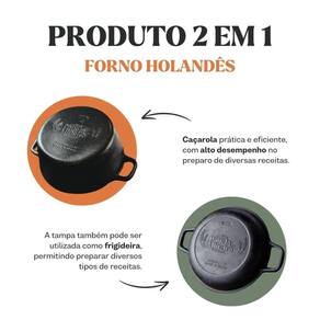 O Forno Holandês de Ferro Fundido da Panela Mineira é um verdadeiro 3 em 1 (assadeira, caçarola e frigideira).