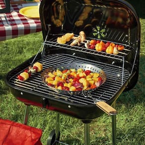 Cabo removível permite revirar os alimentos para serem grelhados por igual. Maravilhosa para fazer camarões grelhados com legumes, mix de frutos do mar, etc.