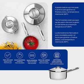 Pode ir ao forno?: Sim, para gratinar ou finalizar pratos na temperatura máxima de 260°C.