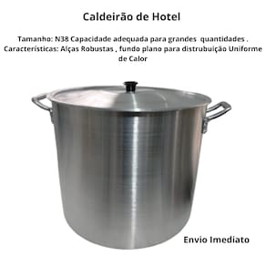 Descrição do Caldeirão Industrial Alumínio Nº38 Hotel Versatilidade Profissional: O caldeirão industrial de alumínio número 38 é a escolha ideal para cozinhas de hotéis e estabelecimentos comerciais que exigem alto desempenho e capacidade generosa de preparação de alimentos.