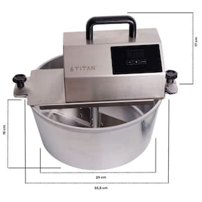 Panela misturadora de doces com capacidade de 10 litros, mistura automática, estrutura robusta, aquecimento uniforme, fácil de limpar e usar, economiza tempo e esforço, design compacto. Motor protegido em inox, pegador em baquelite. Controlador digital para ajustar tempo e velocidade.Lâmpada piloto