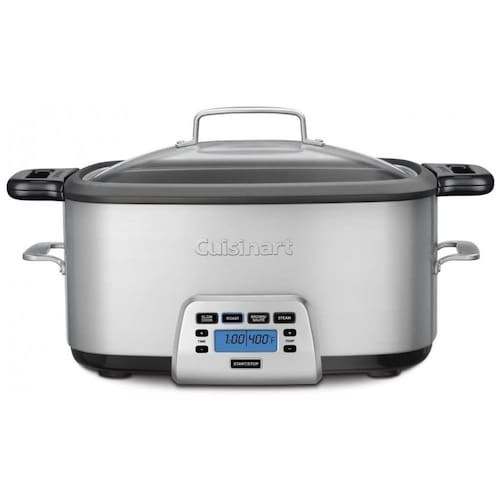 Cozimento lento, assar, dourar/sauté, cozinhar a vapor, display LCD azul retroiluminado, tampa de vidroLâmpada piloto