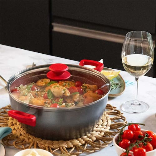 Com revestimento emborrachado, evita queimar as mãos. Possui alta resistência ao calor enquanto você cozinha.