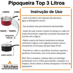 Conteúdo da embalagem: 1 (Uma) Panela Pipoqueira Top 3l Aluminio com Tampa de Vidro.
