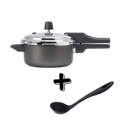 Panela de pressão 3 litros antiaderente com fechamento externo e concha nylon multiflon panela de pressão multiflon quartzo antiaderente 3l com fechamento externo - preta + concha nylon multiflon