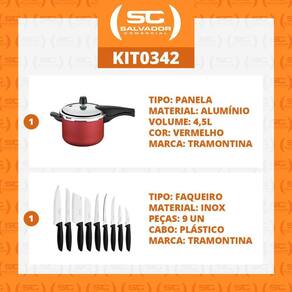 Componentes do kit:- 1 panela de pressão 4,5 vancouver vermelho -tramontina- 1 conjunto facas 9pç - tramontina- não indicado para fogão indução.Panela pressão 4,5 lts antiaderente tramontina vancouverdescrição ficha técnica:modelo vancouver starfloncód. 20582/620 grafitecód. 20582/720 vermelhaeficiente e segura.Produzida em alumínio com revestimento interno e externo em antiaderente starflon t1tampa em aluminio com acabamento externo polido e interno satinado tampa não é antiaderente .Alças e cabo superior e inferior em baquelite.Sitema de segurança lateral.Válvula de segurança.Válvula de trabalho alívio de pressão .- revestimento antiaderente starflon.- maior resistência á desgaste por fricção, raspagem.- pode cozinhar fogão gás, elétrico e também vitrocerâmico.- fácil manuseio e limpeza.- capacidade 4,5l.- 1 unidade por embalagem.- 3 sistema de segurança 1 cabo e 2 na tampa. peso líquido: 1,6 kgpeso bruto: 1,75 kgmedidas internas panela : 19,5cm diâmetro x 14,5 alt. verifique o nivel máxima informado no interior panela medida externa: 22,9cm a x 40,8cm l x 23,1 p - mais detalhes, na foto do anuncio .Jogo de facas plenus 9pç tramontina 23498/048faca e garfo.Descrição ficha técnica:modelo plenus 9 peças.Cód. 23498/048 cor preta.Uso seguro e adequado:- antes da primeira utilização, lave bem as peças e seque-as.- produto cortants e perfurantes, tenha cuidado e mantenha sempre fora de alcance das crianças.- para maior durabilidade dos produtos, recomenda-se secar bem antes de gaurar, mesmo após lavagem em máquinas.- para descarte dos produtos e embalagem, sega as orientações de reciclagem vigente.Conteudo:1 faca lâmina 7,6cm para tornear torneia, descasca e esculpe frutas e verduras .1 faca lâmina 7,6cm para legumes ideal cortar, descascar e fazer cortes delicados .1 faca lâmina 12,7cm para churrasco e frutas com fio serrilhado para corte de carne cozidas e frutas. Não necessita reafiação .1 faca lâmina 12,7cm para tomates a lâmina microserrilhada rompe e pela do tomate sem amassar 1 faca lâmina 12,7cm para dessosa ideal para separar a carne dos ossos e tirar a gordura .1 faca lâmina 12,7cm santoku ideal para cortar, fatiar e picar .1 faca lâmina 17,8cm pão a lâmina serrilhada corta sem amassar .1 faca lâmina 17,8cm chef toda versatilidade da protagonista da cozinha .1 faca lâmina 12,7cm cutelo ideal para quebrar e separar os ossos .- lâmina em aço inox ,maior resistência á desgaste por fricção, raspagem.- fácil manuseio e limpeza sempre cuidando com navalha e pontas .- 9 facas por embalagem.Peso líquido: 1,5 kgpeso bruto: 1,65 kgexpecificação da embalagem do kit:peso bruto: 3,4kgmedida embalagem: 23cm alt x 39cm l x 43cm p.