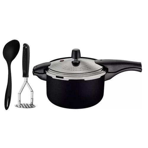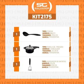Muito importante:-- conferir produtos no ato do recebimento. Não aceitar produtos com embalagem violada amassado, rasgado, aberto, quebrado, etc , a recusa deve ser feita no ato.Componentes do kit:1 - panela de pressão effect alumínio vancouver antiaderente 24 cm 6 l preto - tramontina 205924241 - concha ability em nylon preto - tramontina 251571001 - amassador esmagador de batatas e feijão manual utilitá em aço inox - tramontina 25655100jogo de panela pressão 6l alumínio antiaderente preto com amassador inox e concha tramontinaa panela de pressão tramontina vancouver effect em alumínio com revestimento interno e externo em antiaderente starflon max preto 24 centímetros de diâmetro 6 litros é um item indispensável para tornar suas experiências na cozinha mais práticas e eficientes. Com um design moderno e funcional, ela tem corpo fabricado em alumínio com espessura de 3,2 milímetros e garante um cozimento rápido e uniforme, sem que os alimentos grudem em sua superfície, pois conta com revestimento interno e externo de antiaderente starflon max. Ela ainda é muito fácil de limpar, mais durável e possui tampa de alumínio com acabamento externo polido e interno satinado, que proporciona uma vedação impecável e impede a fuga da pressão.A concha tramontina ability em nylon preto é a escolha perfeita para levar praticidade na hora de servir aquela deliciosa sopa. Ela é produzida em nylon, pode ser utilizada em temperaturas de até 180 graus e não risca ou arranha os revestimentos antiaderentes e cerâmicos. Ela ainda é fácil de limpar e pode ser lavada na máquina de lavar louças.O utensílio perfeito para quem busca itens funcionais para sua cozinhater o utensílio certo deixa qualquer receita moleza. Nhoque de batata, por exemplo, parece um prato difícil, mas com o amassador de batatas e feijão tramontina utilitá em aço inox com cabo depolipropileno preto o preparo fica muito fácil. Produzido em aço e inox e cabo em polipropileno o amassador, da linha utilità, faz toda diferença na sua cozinha.Garantia: 90 dias de garantia legal para vícios ou defeitos de fabricação.Informações técnicas:- material: alumínio- coleção: vancouver- cor: preto- pode ser utilizada nos fogões: gás, elétrico e vitrocerâmico - resistência elétrica.Jogo de panela de pressão, 6l, alumínio, antiaderente, preto, amassador inox, concha, tramontina, utensílios de cozinha, cozinha prática, preparo de alimentos, panela de qualidade, concha de cozinha, ferramentas de cozinha
