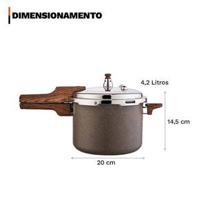 Distribuído por feheros shop Panela antiaderente 4,2 litros revestimento cerâmico indução premium Atenção A panela com revestimento cerâmico possui propriedades antiaderentes que ajudam a evitar que os alimentos grudem. Porém, não é 100% antiaderente e pode exigir pequena quantidade de óleo ou para melhor desempenho. - produto certificado pelo inmetro nível a . - evite que a chama do fogão atinja as laterais da panela. - não deixe o produto superaquecer vazio. - leia atentamente a descrição e siga o passo a passo que o fabricante recomenda. Informações do produto A panela 4,2 litros é ideal para famílias menores ou para quem deseja preparar receitas em quantidades moderadas. Compatível com fogões a gás, elétricos, vitrocerâmicos e por indução, ela garante versatilidade para qualquer cozinha. Sua estrutura em alumínio de alta qualidade, combinada ao revestimento cerâmico antiaderente em múltiplas camadas, proporciona resistência e longa durabilidade, evitando que os alimentos grudem e permitindo o uso de menos óleo. Especificações técnicas - compatível com fogões a gás, elétricos, vitrocerâmicos e por indução, oferecendo versatilidade para diferentes cozinhas. - revestimento cerâmico antiaderente livre de pfoa, que preserva o sabor dos alimentos e permite cozinhar com menos óleo. - cabo de baquelite com revestimento soft touch macio, que não esquenta e garante conforto e segurança. - fundo triplo de indução que aquece rapidamente e distribui o calor de forma uniforme, economizando tempo e energia no preparo das refeições. - estrutura em alumínio de alta resistência, com duas camadas de revestimento cerâmico e uma camada especial resistente a altas temperaturas, garantindo durabilidade e desempenho superior. - sistema de segurança completo com regulador , duas válvulas de segurança adicionais, válvula flutuante, anel de vedação e tampa à prova de bloqueio. Ficha técnica do produto - altura com tampa: 18,5 cm - altura sem tampa: 14,5 cm - capacidade: 4,2 l - compatibilidade: fogões de indução, a gás, elétricos e vitrocerâmicos - comprimento total: 41,5 cm - certificação: inmetro nível a - diâmetro: 20 cm - dispositivos de segurança: 6 sistemas de bloqueio - espessura: 4 mm - material do cabo: baquelite soft touch - material do corpo: alumínio de alta qualidade - peso: 1,450 kg - revestimento: cerâmico Antes do primeiro uso - lave a panela com esponja macia e detergente líquido. - seque bem com pano limpo. - coloque uma fina camada de óleo vegetal na borda do corpo e no anel de vedação. - coloque água até a metade da panela, feche a tampa e aqueça até que o regulador libere o vapor. - leve ao fogo baixo por 2 minutos. - deixe esfriar, lave novamente e seque antes de usar. Após o uso - aguarde a panela esfriar antes de lavar. - lave manualmente com água morna, sabão neutro e esponja macia. - para remover resíduos, deixe de molho em água por alguns minutos. - não utilize esponjas ou produtos abrasivos. - nunca segure o regulador para liberar a pressão e jamais force a abertura da tampa, pois ela só se abrirá quando a pressão - estiver totalmente liberada. - não é indicado o uso em lava-louças, para preservar o revestimento cerâmico e garantir maior durabilidade. Item incluso no pacote - 01 panela antiaderente revestimento cerâmico 4,2 litros Todas as fotos são reais dos produtos. Qualquer dúvida, estamos à disposição. Dúvidas frequentes 01- o produto é novo Possui R: sim, o produto é novo e possui de 3 meses conforme as normas do fabricante. 02- é compatível com fogão de indução R: sim, ele possui fundo especial que permite o uso em fogões de indução, além de fogões a gás, elétricos e vitrocerâmicos.