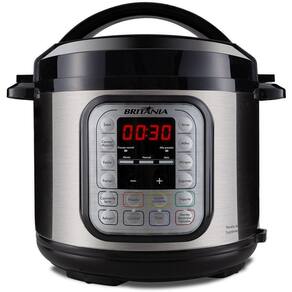Panela Britânia Revestimento Gold BPP02G 900W Aço inox 220v Cozinhe com maior praticidade e sabor com a Panela Britânia Revestimento Gold BPP02G 900W Ela traz 11 programas de cozimento pré-definidos. Basta colocar o alimento dentro, selecionar a opção, e pronto Você também tem a opção de programar o cozimento automático com até 24 horas de antecedência. Muito mais praticidade dentro da cozinha, simples assim. Mais praticidade para cozinhar o feijão que a família toda gosta. Prepare refeições tamanho família Graças a sua incrível capacidade de 5L . Maior durabilidade e poder de antiaderente com revestimento Revestimento Gold. Preparos e limpeza muito mais fáceis. Sirva os alimentos quentes e saborosos quando você quiser, isso porque a função Manter Aquecido mantém a temperatura por muito mais tempo. Além de trazer a função Manter Aquecido, que permite servir os alimentos aquecidos por muito mais tempo. E não se preocupe, os alimentos não irão grudar graças ao seu revestimento antiaderente Dura Mais. Possibilitando uma limpeza muito mais fácil. E para evitar qualquer acidente, a Panela Britânia Multifuncional Digital BPP2PI conta com 9 sistemas de segurança, para que você cozinhe de forma muito mais tranquila e segura Prepara diversos tipos de alimentos, feijão carnes, arroz, canjica, legumes entre outros, Painel com controle digital e fácil acesso as funções; Visor digital para acompanhamento da programação e dos preparos; Possui 11 modos de cozimento pré-programado, permite iniciar o cozimento com apenas um toque; Modos de cozimento pré-programados: Sopa, Carnes/Músculo, Feijão, Frango, Arroz, Milho, Pudim, Legumes, Iogurte, Cozimento Lento, Refogar. Função manter aquecido, mantém os alimentos aquecidos após o preparo. Pode ser Utilizado para aquecer os alimentos a uma temperatura aproximada de 70C; Função refogar, para dourar temperos e outros alimentos antes de cozinhar na pressão; Função cozinhar, permite programar o tempo de cozimento manualmente Função Pressão permite ajustar o nível para o cozimento, nível normal e alta pressão Função cozimento lento, permite cozinhar alimentos em temperaturas mais baixas por até 12horas Timer programável, permite programar o preparo dos alimentos com até 24 hora de antecedência; Tigela removível com capacidade de 5L, possui revestimento interno antiaderente, fácil de usar e limpar. A tigela possui escalas para preparar até 10 xícaras de arroz cru; Acompanha colher e copo dosador; Suporte para apoiar a colher no produto; Possui 9 sistemas de segurança; Tampa com trava de segurança; Válvula de controle de vapor removível, Alças laterais, facilidade para transportar o produto; Silenciosa, não libera vapor durante o cozimento dos alimentos; Alças laterais com encaixes para apoiar a tampa; Cordão elétrico removível, permite levar a panela à mesa com facilidade; Pés antiderrapantes; Acabamento em inox; Composição: metal, plástico e tigela em alumínio; enquanto durarem os estoques. Especificações Altura31,50cm Largura34,30cm Profundidade30,50cm Peso4,37kg Características Dias 360 Corprata Estadonovo Detalhes do funcionamentoDetalhes do funcionamento Capacidade L 5 Modelo- Alçasim Marcabritânia Função manter aquecidoSim Potência900