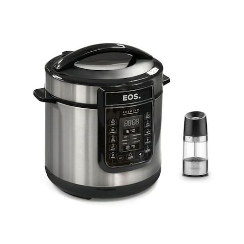 Muito importante:-- conferir produtos no ato do recebimento. Não aceitar produtos com embalagem violada amassado, rasgado, aberto, quebrado, etc , a recusa deve ser feita no ato.Panela de pressão elétrica digital epp60di 220v eos com moedor sal ou pimenta realce p tramontinaComponentes do kit:- panela de pressão elétrica caçarola multicooker multiuso digital inox 6l epp60di 220v - eos- moedor saleiro sal ou pimenta realce em acrílico e aço inox - tramontina 61653100Panela de pressão elétrica caçarola multicooker multiuso digital inox 6l epp60di 220v - eos- maior segurança - 10 dispositivos contra falhas para garantir a sua proteção e de sua família.- função iogurte - prepare seu próprio iogurte caseiro de forma prática.- display digital - mais modernidade para sua cozinha.- recipiente interno graduado para facilitar preparo de receitas.- função esterilizar - acompanha suporte para esterilizar e garantir a limpeza de diversos objetos de forma fácil e rápida.- função manter aquecido - mantém a comida quente até a hora do consumo.- fácil de utilizar - receitas prontas para transformar você em um chef.- acompanha copo medidor 160ml, espátula plástica e grade para esterilização.- menu fit - diversas opções saudáveis prontas para serem preparadas ao toque de um botão.- alta capacidade - 6l para você cozinhar para toda família.- fácil de limpar - recipiente interno antiaderente e removível.- silenciosa - não fica liberando vapor o tempo inteiro gerando ruídos no ambiente.Características técnicas:- segurança:Válvula de alívio manual;Dispositivo anti-bloqueio fixo porca de vedação ;Dispositivo anti-bloqueio removível para limpeza;Válvula de alívio automática;Dispositivo de travamento de tampa;Sistema de proteção de fechamento de tampa;Switch de controle de pressão;Limitador de temperatura;Fusível térmico n2.- voltagem: 220v;- frequência: 60hz;- potência: 1000w.- consumo médio: 0,335kw/h;- garantia legal: 1 ano;- modelo: epp60di;- capacidade: 6 litros;- cor: inox;- display: digital.Moedor saleiro sal ou pimenta realce em acrílico e aço inox - tramontina 61653100- o moedor de sal e pimenta, possui design clean e arrojado, levando beleza e praticidade para seu dia a dia- possui engrenagens de alta resistência, proporcionando maior durabilidade.- com ajuste de moagem, possui regulador de tamanho de grão, para que seja ajustado conforme seu gosto.- garantindo higiene e beleza.- material: moedores de cerâmica- compartimento em acrílico- tampa abs- capacidade:- sal grosso = 175g- pimenta = 75g- peso líquido: 0,15 kg.- peso bruto: 0,18 kg.- medidas produto: 14,2cm a x 5,8cm diâmetro- medidas embalagem: 15cm a x 6,5cm l x 6,5cm cTamanho da embalagem: 38cm a x 33cm l x 33cm p;Peso bruto: 5,9kg.