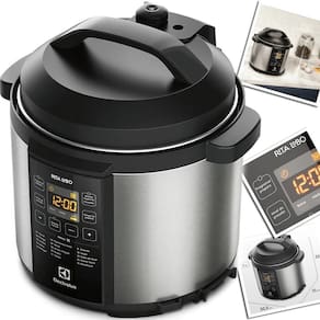 Panela Pressao Elétrica 6L Electrolux pcc20 Antiaderente Preta Experience por Rita Lobo Aço Escovado Panela de Pressão Elétrica Electrolux Experience por Rita Lobo PCC20-----------Super Segura10 dispositivos de segurança para sua tranquilidade. Inclui aviso sonoro e travamento automático da tampa.Design Sofisticado?Em aço inox escovado, o acabamento também é durável, fácil de limpar e não absorve manchas de dedo.-----------Cabo Elétrico RemovívelSirva sua refeição transportando a panela até a mesa com maior praticidade.------------Muito silenciosaConverse na cozinha tranquilamente ao preparar suas refeições.Panela interna antiaderente de 6LPrepare porções maiores de deliciosas receitas. Além disso, é removível e fácil de limpar.--------3 níveis de pressãoSelecione o nível ideal para alcançar o ponto certo ao cozinhar diversos alimentos. Escolha entre baixo, médio e alto.Display Digital com Função Programar PreparoSelecione o início do preparo para até 24h depois de programado e encontre sua receita pronta no horário desejado.Cozimento LentoFunção ideal para cozinhar em modo brando. Extraia o máximo sabor dos alimentos. Panela de Pressão Elétrica Electrolux Experience (PCC20) 1 Espátula de Plástico 1 Concha de Plástico 1 Copo Medidor Certificado de garantia Manual de Instruções-----------Especificações Técnicas Altura: 32 cm Largura: 30,5 cm Profundidade: 31 cm Peso: 5 kgA Panela de Pressão Elétrica Electrolux Experience PCC20 assinada pela Chef Rita Lobo traz praticidade e maior segurança no preparo das refeições, tornando suas receitas deliciosas e saudáveis.Com as 15 receitas e modos de cozimento pré-programados, ela descomplica o preparo de pratos conhecidos. Faça saborosas carnes, mandioca e outras receitas com a facilidade de um toque. Além disso, os 3 níveis diferentes de pressão ajudam a alcançar o ponto ideal de cozimento dos alimentos, desde legumes até diferentes tipos de carnes. Selecione a Função Cozimento Lento para extrair o máximo sabor dos preparos de temperatura branda, como barreado e costela.O produto conta com 10 dispositivos de segurança para sua tranquilidade, como o aviso sonoro e o travamento automático da tampa ao atingir a temperatura de pressão. A panela interna antiaderente de 6 litros é ideal para fazer receitas que servem toda a família. Por ser removível e antiaderente, é fácil de limpar.O display em LED oferece a Função Programar Preparo, que permite planejar o início do cozimento de suas receitas com até 24 horas de antecedência, para que você encontre sua refeição pronta no horário que preferir. O cabo elétrico removível facilita o transporte da panela, permitindo colocá-la na mesa para servir seus alimentos com mais praticidade. Com acabamento em aço inox escovado, oferece modernidade, além de ser durável e fácil de limpar.Electric_Pressure_Cooker_PCC20_FrontView_RitaLobo_Electrolux_1000x100015 receitas pré-programadas:Prepare refeições conhecidas, como mandioca e carne, com apenas um toque.Super segura:10 dispositivos de segurança, como aviso sonoro e travamento automático da tampa.Funcionamento silencioso:Sua cozinha livre de barulhos durante as preparações.Capacidade de 6L:Alta capacidade ao preparar porções maiores.Panela interna antiaderente e removível:Mais facilidade de limpeza.3 níveis de pressão:Escolha entre baixo, médio ou alto para alcançar o ponto de cozimento ideal de variados alimentos.Display LED com Função Programar Preparo:Controle as funções da panela com facilidade e programe o início do preparo para até 24h depois.Cozimento lento:Cozinha em modo brando, extraindo o máximo de sabor dos alimentos.Acabamento em aço inox:Sofisticado, durável e fácil de limpar. Resistente a manchas de dedo.Cabo elétrico removível:Transporte a panela com maior facilidade para servir.