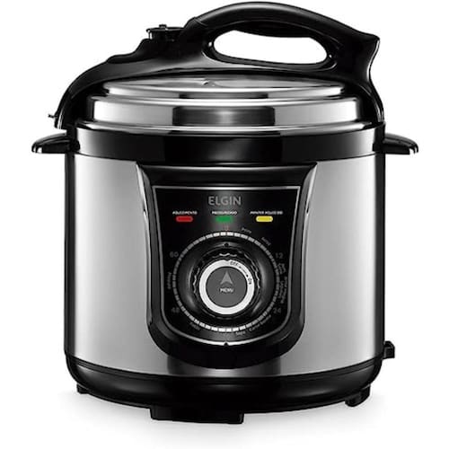 Prepare os melhores pratos com a Panela de Pressão Elétrica Inox Elgin. Com capacidade para até 4,0L e potência de 840W, ela é adequada para elaborar diversas receitas. Possui controle de fácil programação, basta girar o botão do timer até o tempo desejado e pronto! Também apresenta 10 funções de preparo pré-ajustados para auxiliar no cozimento e trazer mais praticidade. Além disso, tem a função Manter Aquecido permitindo que o alimento continue quente e pronto para servir. A Panela de Pressão Elétrica Elgin ainda tem 9 dispositivos de segurança para que não haja nenhum acidente ou dificuldade na utilização do produto, cuba antiaderente de fácil limpeza que pode ir para máquina de lavar louças, comando de fácil manuseio com timer de 60 minutos, trava na tampa e válvula que não permite que a pressão interna exceda o limite. Para facilitar o manuseio acompanha colher e copo medidor.