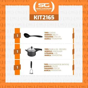 Muito importante:-- conferir produtos no ato do recebimento. Não aceitar produtos com embalagem violada amassado, rasgado, aberto, quebrado, etc , a recusa deve ser feita no ato.Componentes do kit:1 - panela pressão 4,5 lts antiaderente tramontina vancouver1 - concha ability em nylon preto - tramontina 251571001 - amassador esmagador de batatas e feijão manual utilitá em aço inox - tramontina 25655100jogo de panela pressão antiaderente 4,5l grafite com amassador inox e concha tramontinaeleve a eficiência e a qualidade das suas preparações culinárias com a panela de pressão tramontina vancouver de 4,5 litros. Com revestimento antiaderente, esta panela torna o cozimento mais prático e a limpeza mais fácil. Seu design funcional e elegante, aliado à renomada marca tramontina, garante que você tenha uma aliada confiável na cozinha. Preparar refeições saborosas e nutritivas nunca foi tão simples. Adquira a panela de pressão tramontina vancouver e descubra como a tradição e a inovação se encontram para facilitar seu dia a dia na cozinha.A concha tramontina ability em nylon preto é a escolha perfeita para levar praticidade na hora de servir aquela deliciosa sopa. Ela é produzida em nylon, pode ser utilizada em temperaturas de até 180 graus e não risca ou arranha os revestimentos antiaderentes e cerâmicos. Ela ainda é fácil de limpar e pode ser lavada na máquina de lavar louças.O utensílio perfeito para quem busca itens funcionais para sua cozinhater o utensílio certo deixa qualquer receita moleza. Nhoque de batata, por exemplo, parece um prato difícil, mas com o amassador de batatas e feijão tramontina utilitá em aço inox com cabo depolipropileno preto o preparo fica muito fácil. Produzido em aço e inox e cabo em polipropileno o amassador, da linha utilità, faz toda diferença na sua cozinha.Garantia: 90 dias de garantia legal para vícios ou defeitos de fabricação.Informações técnicas utensílios:- material: alumínio- coleção: vancouver starflon- cor: vermelho- volume: 4,5l - pode cozinhar fogão gás, elétrico e também vitrocerâmico.Jogo de panela de pressão, antiaderente, 4,5l, grafite, amassador inox, concha, tramontina, utensílios de cozinha, panela de pressão grafite, amassador de alimentos, concha de cozinha, design tramontina, ferramentas de cozinha, cozinha prática, preparo de alimentos, panelas de qualidade.
