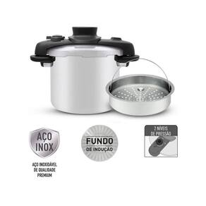 Panela OptiSpace 7L Inox Com Fundo Triplo E Cesto De Vapor Tefal A panela OptiSpace 7 litros da Tefal é feita em inox e conta com fundo triplo. Ela é compacta e chega a ser 40% menor que outras panelas da mesma litragem. A linha Tefal OptiSpace facilita o armazenamento e otimiza o espaço na sua cozinha. Com toda segurança que você precisa em uma panela , a Tefal OptiSpace possui 5 sistemas de segurança e só pega pressão se estiver devidamente fechada. Além disso, possui dois níveis : um nível para alimentos mais pesados, como grãos e carnes, e outro para alimentos mais leves. Acompanha também uma cesta de vapor para alimentos delicados, retendo seus nutrientes e vitaminas. Compatível com indução e demais fontes de calor graças ao fundo triplo, que distribui o calor uniformemente, resultando em um cozimento mais rápido e homogêneo. Atributos do Produto: Referência: 000000007114000613 Código: 7114000613 Código de Barras: 3045384363256 Cor: Cinza Inox : 24 Meses fabricante Marca: Tefal Modelo: OptiSpace Material: Inox Capacidade: 7 litros Detalhes e Especificações Técnicas: Fundo triplo Com 2 níveis Com 5 sistemas de segurança Compatível com todo tipo de fogão Acompanha cesto para cozimento a vapor Até 40% menor que panelas da mesma litragem Dimensões do Produto: Altura: 29,4 cm Largura: 29,1 cm Comprimento: 36,1 cm Peso: 3,3 Kg Conteúdo da Embalagem: 01 Panela OptiSpace 7L Inox Com Fundo Triplo E Cesto De Vapor Tefal 01 Manual de instruções Importante Produtos de decoração não inclusos. Imagens meramente ilustrativas; As cores dos objetos podem sofrer alterações devido a luminosidade, configurações do monitor e até mesmo a percepção do usuário; Os dados divulgados são de responsabilidade do fabricante/fornecedor. Marca: Não Informado