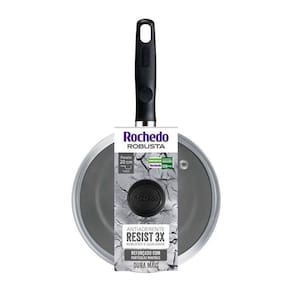 Linha Rochedo Robusta, com antiaderente Resist 3x: robustez e qualidade. Reforcado com particulas minerais, dura mais. Com a Panela Rochedo Robusta Grafite 20cm voce surpreende sua familia com robustez e durabilidade. Conheca todos os diferenciais dessa linha: Antiaderente Resist 3X: Robustez e Qualidade. Reforcado com particulas minerais, dura mais. Durabilidade e resistencia: Alta espessura para durar mais Base limpa facil: Nao mancha, nao gruda e e facil de limpar. Marcas de Medidas: Para facilitar o preparo Alem de contar com a qualidade da marca Rochedo, presente no Brasil ha mais de 100 anos, a Panela Rochedo Robusta Grafite 20cm e livre de substancias toxicas (PFOA), garantindo a seguranca no uso do produto. Pode ir em todos os tipos de fogoes, exceto inducao, compativel com maquina de lavar loucas.