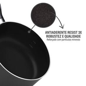 Linha Rochedo Robusta, com antiaderente Resist 3x que oferece maior robustez e qualidade. Reforçado com partículas minerais, dura mais. A Panela Rochedo Robusta Grafite 18cm irá surpreender sua família com sua durabilidade e resistência. Conheça todos os diferenciais dessa linha: