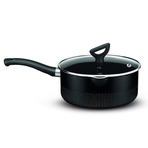 Panela Rochedo Smart Pr20 2,7 Litros Tampa Vidro 20Cm Contém: 01 Panela Rochedo Smart PR20 Com Tampa Vidro 20cm Panela Rochedo Smart de 20cm com revestimento interno profissional, um antiaderente de alta performance, que permite cozinhar facilmente sem óleo. Revestimento antiaderente externo, que não permite manchar com as chamas do fogão. Possui tampa apoia fácil: Mais do que uma tampa, um suporte para não sujar sua cozinha. Além de liberar vapor e permitir maior controle do preparo. Base limpa fácil: Não gruda, não mancha e é fácil de limpar. Bicos laterais: Fácil e seguro para servir. Receitas na medida certa: Marcação de medidas na parte interna da panela. GROUPE SEB Marca: Rochedo Linha: Smart Cor: Preto com detalhes azuis Material: Alumínio (com revestimento antiaderente) Selo Inmetro: A Medidas Aproximadas: Diâmetro: 20cm Comprimento: 37 cm Altura: 9 cm