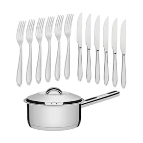 Muito importante: -- conferir produtos no ato do recebimento. Não aceitar produtos com embalagem violada amassado, rasgado, aberto, quebrado, etc , a recusa deve ser feita no ato. Conjunto de 1 panela solar 16cm 1,4l com 48 talheres de mesa laguna tramontina Componentes do kit: 24 un - 63906180 faca para churrasco laguna em aço inox - tramontina 24 un - 63906020 garfo de mesa laguna em aço inox - tramontina 1 un - 62501160 panela em aço inox linha solar fundo triplo 16 cm 1,4l pit7 - tramontina --- faca para churrasco laguna em aço inox - tramontina 63906180 : 90 dias para vícios ou defeitos de fabricação - ideal para restaurante, lancheria, paderia, linha doméstica, residência, gourmet - acabamento em brilho, com detalhes no cabo - própria para uso diário combina com qualquer ambiente - pode ser lavada diariamente na máquina de lavar louças - peso líquido: 0,043 kg - peso bruto: 0,045 kg - dimensões embalagem : 0,8cm a x 2cm l x 23cm p - dimensões produto : 0,3cm a x 1,8cm l x 21cm p - espessura: 3,0 mm --- garfo de mesa laguna em aço inox - tramontina 63906020 : 90 dias para vícios ou defeitos de fabricação - ideal para restaurante, lancheria, paderia, linha doméstica, residência, gourmet - próprio para uso diário combina com qualquer ambiente - pode ser lavado diariamente na máquina de lavar louças - peso líquido: 0,032 kg - peso bruto: 0,035 kg - dimensões embalagem: 2cm a x 2,5cm l x 20cm p - dimensões produto : 1,9cm a x 2,3cm l x 19,3cm p - espessura: 1,6 mm --- panela em aço inox linha solar fundo triplo 16 cm 1,4l pit7 tramontina 62501160 : 90 dias para vícios ou defeitos de fabricação - pode ir ao forno em temperatura máxima de 260c, podendo haver mudança na coloração. - produto com certificação compulsória certificada pela ocp 0104- pcn do brasil, registro 001470/2018, conforme portaria inmetro 419/2012. Especificações técnicas: - altura sem tampa: 8cm - altura com tampa: 11cm - diâmetro externo: 18cm - diâmetro interno: 16cm - altura interna: 7cm - largura total: 33cm