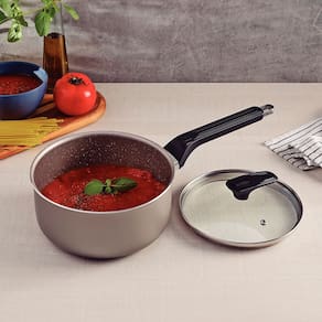 Especificações Gerais do Produto: Pegador / Cabo: Baquelite com acabamento soft touch Dimensões AxLxP (mm): 137x193,5x371,8 Cor: Amêndoa Material: Alumínio e baquelite Garantia: 90 dias junto ao fabricante Referência: 28573418 Tecnologia da Panela: Starflon Max Pode ir à Máquina de Lavar Louças?: Não Capacidade da Panela: 2,1L Linha: Milazzo Espessura: 1,8 mm Revestimento Interno: Antiaderente Tipo de Fogão: Gás, elétricos e vitrocerâmicos (resistência elétrica) Tampa: Vidro temperado com saída de vapor