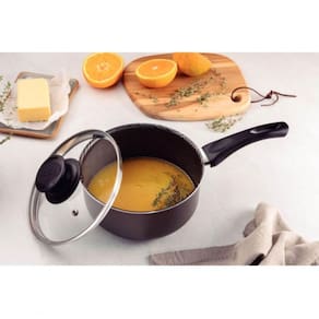 Com a panela Tramontina Paris em alumínio com revestimento interno e externo em antiaderente Starflon Max chumbo com tampa de vidro 16 centímetros 1,5 litros você vai preparar suas receitas com muito mais praticidade, principalmente aquele arroz que acompanha todas as suas refeições. Ela é produzida em alumínio com espessura de 1,8 milímetros e revestimento interno e externo de antiaderente Starflon Max, atributos que proporcionam um cozimento rápido e uniforme dos alimentos, evitam que eles grudem em sua superfície e a tornam muito fácil de limpar. Ela vem com tampa de vidro com saída de vapor e borda de aço inox e conta com cabo em baquelite antitérmico, material que não aquece e deixa o manuseio mais confortável e . Uma panela prática e que pode ir à máquina de lavar louças!