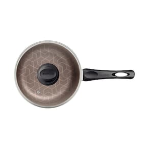 Panela Tramontina Paris em Alumínio com Revestimento Interno e Externo em Antiaderente Starflon Max Vermelho com Tampa de Vidro 22 cm 3,8 L A panela Tramontina Paris em alumínio com revestimento interno e externo em antiaderente Starflon Max vermelho com tampa de vidro 22 centímetros 3,8 litros vai te ajudar a preparar suas receitas com muito mais praticidade. É produzida em alumínio com espessura de 1,8 milímetros e revestimento interno e externo em antiaderente Starflon Max, atributos que juntos, proporcionam um cozimento rápido e uniforme dos alimentos, evitam que eles grudem em sua superfície e a tornam muito mais fácil de limpar. Para sua segurança, o cabo e o pegador da tampa de vidro são em materiais antitérmicos e não aquecem. Além de todas essas características, ela é uma panela de excelente durabilidade e que pode ser levada à máquina de lavar louças. Escolha Tramontina e tenha prazer em preparar suas melhores receitas! Corpo de alumínio com espessura de 1,8 mm que proporciona cozimento rápido e uniforme. Revestimento interno e externo de antiaderente Starflon Max que não gruda, é fácil de limpar, mais durável e não é prejudicial à saúde, pois é livre de PFOA. Tampa de vidro temperado, com saída de vapor e borda de aço inox. Cabo de baquelite antitérmico e pegador de nylon que oferecem segurança durante o manuseio. Pode ir à máquina de lavar louças facilitando seu dia a dia. Cuidados com o produto A capacidade volumétrica máxima para cozimento é de 3/4 da capacidade total da peça. Posicione o cabo do utensílio voltado ao centro do fogão. Em fogões com grade, centralize a peça sobre a chama ou fonte de calor e alinhe o cabo com a grade. Utensílios quentes devem estar fora do alcance das crianças. Antes do primeiro uso, lave com esponja macia, sabão neutro ou detergente líquido. Depois de secar, unte a área interna com óleo ou gordura e leve ao fogo por um ou dois minutos. Deixe esfriar e lave novamente. Seu utensílio Starflon está pronto para uso com ou sem gordura, sempre em fogo baixo ou médio (nunca superior a 260 °C). Para mexer os alimentos use somente utensílios de silicone, nylon ou madeira. Com o uso, o cabo e o pegador podem afrouxar devido à dilatação normal dos materiais. Reaperte apenas o suficiente, sem forçar. Limpeza: Evite a imersão do utensílio quente em água fria. Nunca utilize produtos abrasivos na lavagem. Se deixar queimar alimentos, umedeça a área e reserve até que possa remover os resíduos grudados com esponja e sabão. Para descarte do produto e embalagem siga as orientações de reciclagem vigentes. Garantia 90 dias para vícios ou defeitos de fabricação.