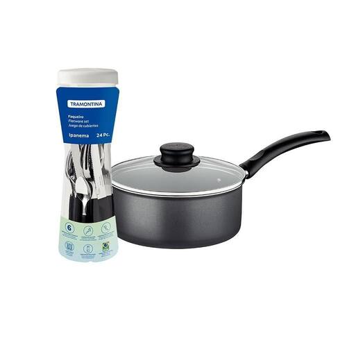 Panela Turim Alumínio Chumbo Antiaderente 1,4l Ptc + Faqueiro Ipanema Preto 24pc - Tramontina
