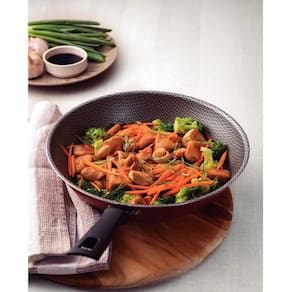 Complete sua cozinha com a Wok Tramontina Loreto em alumínio com revestimento interno e externo antiaderente Starflon Max 28 centímetros de diâmetro 3,6 litros e garanta qualidade e praticidade na hora de preparar suas principais refeições!