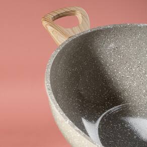 Cerâmica antiaderente de alta qualidade: a wok marble cerâmic é produzida em alumínio com revestimento de 2 camadas de nanoparticulas de biocerâmica, proporcionando um cozimento rápido e uniforme do seu alimento, além de ser super fácil e rápido de lavar.