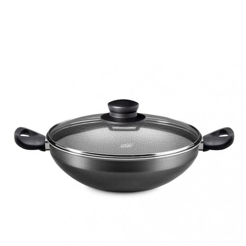 A Panela Wok MTA Supra Antiaderente N28 -4,3L- destaca-se por sua versatilidade. Feita em alumínio com 2mm de espessura, possui revestimento antiaderente Superflon Ultra com 7 camadas, garantindo qualidade e funcionalidade no preparo de diversos tipos de receitas. Suas alças de baquelite antitérmico proporcionam leveza e segurança, além de acompanhar uma tampa de vidro temperado. Ideal para quem busca eficiência e facilidade na cozinha.