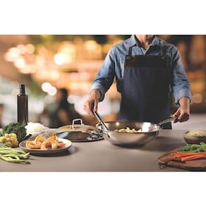 - O corpo triplo da Wok (aço inox + alumínio + aço inox) distribui o calor uniformemente, proporcionando um cozimento mais rápido e uniforme economizando energia e deixando os alimentos aquecidos por mais tempo.