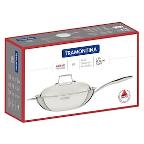 PANELA WOK TRAMONTINA GRANO EM AÇO INOX CORPO TRIPLO COM TAMPA E CABO 32 CM 5,2 L CÓD. 62158320