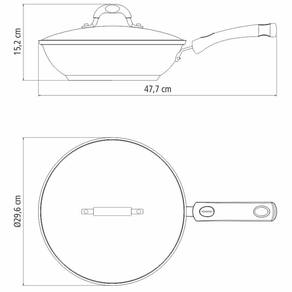 - A panela ainda conta com tampa de vidro que auxilia no preparo dos alimentos e alças e pegadores com revestimento em silicone antitérmico, que não aquecem e deixam o manuseio mais seguro e confortável!