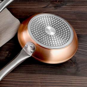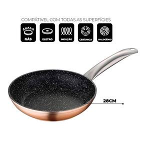- Marca: Bergner - cor: bronze - Coleção: Dafne - Referência: BG-30569-CP - Dimensão (AxLxP):7,50x28,50x51 cm - Material: alumínio Prensado -Cabo de aço inoxidável - Acabamento interno:Antiaderente Marble - Base difusora adequada para todos os tipos de fogões. - Peso aproximado: 1,13 kg