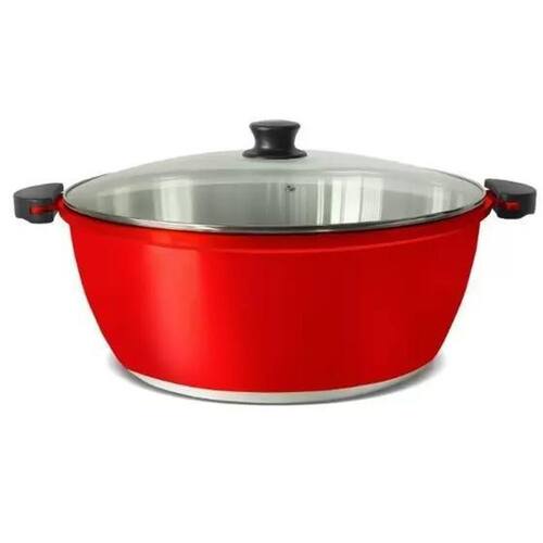 Panelão 36 cm vermelho Resumo: Feita em alumínio fundido e com cabos de baquelite que são isolantes térmicos e resistentes ao calor. Detalhes do produto: Feita em alumínio fundido e com cabos de baquelite que são isolantes térmicos e resistentes ao calor, a linha tradicional da gulê garante mais segurança na hora de cozinhar. Com um design único e seis opções de cores, as panelas gulê são excelentes para preparar o seu alimento, decorar sua cozinha e são resistentes ao uso devido a sua espessura além da pintura suportar até 200c. Fabricante: gulê