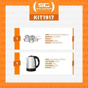 Conjunto de panelas allegra inox 5 peças e chaleira elétrica ech01 1,8l 220v - eos